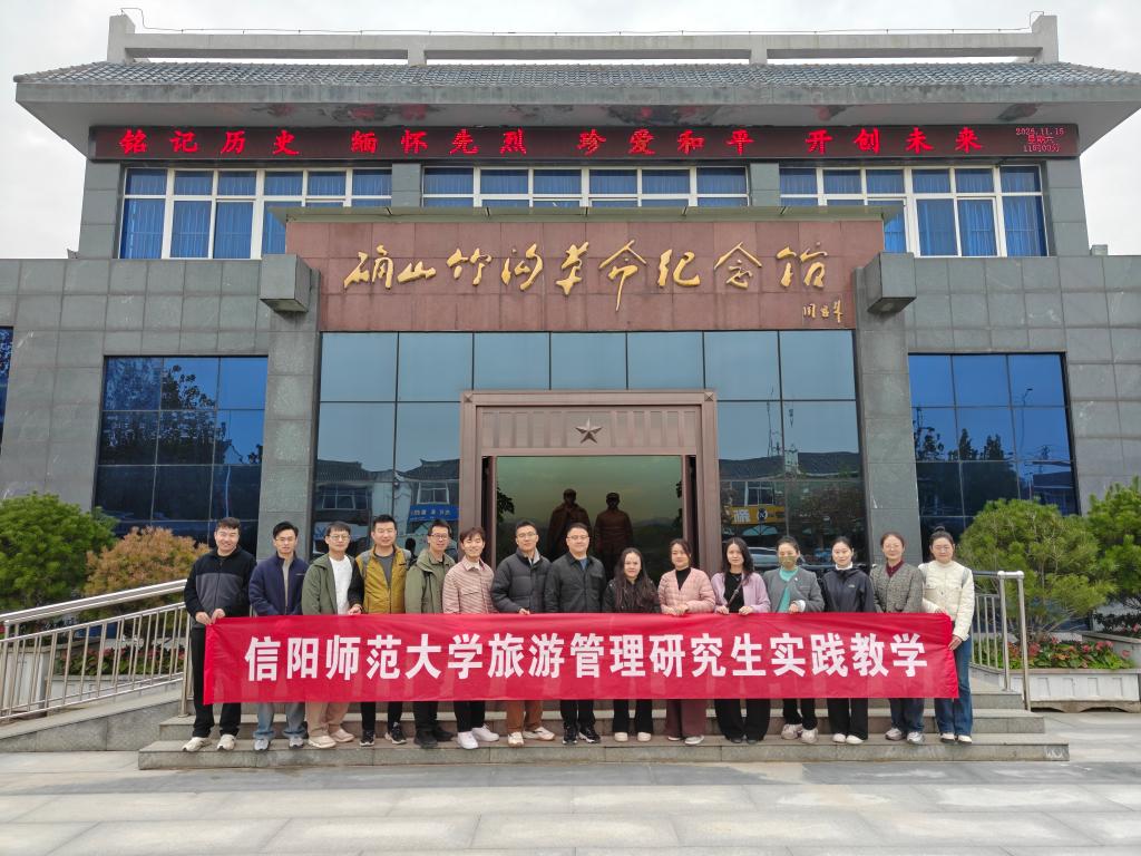 为深化旅游管理专业学位研究生对红色旅游与数字文旅融合发展的认知,推动理论知识向实践能力转化,2025年11月15日,信阳师范大学旅游学院2024级旅游管理专业研究生(红色旅游与数字文旅方向)在李明伟老师的带领下,赴确山县竹沟镇开展“红色传承+数字赋能”主题实践。此次实践以竹沟镇革命纪念馆、竹沟革命烈士陵园、老乐山景区为核心载体,构建集“历史溯源、精神传承、创新应用”于一体的实践育人模式。