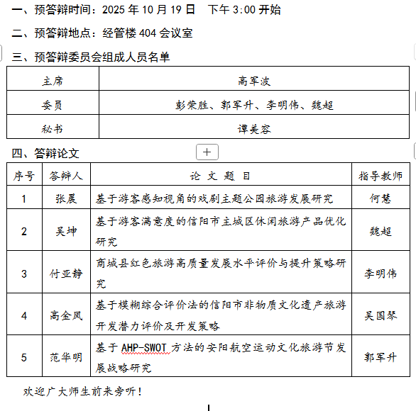 旅游学院2025年下半年硕士研究生学位论文预答辩公告